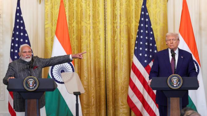 IMAGE: Prime Minister Narendra Modi and US President Donald Trump at the White House. Photograph: Reuters/ANI