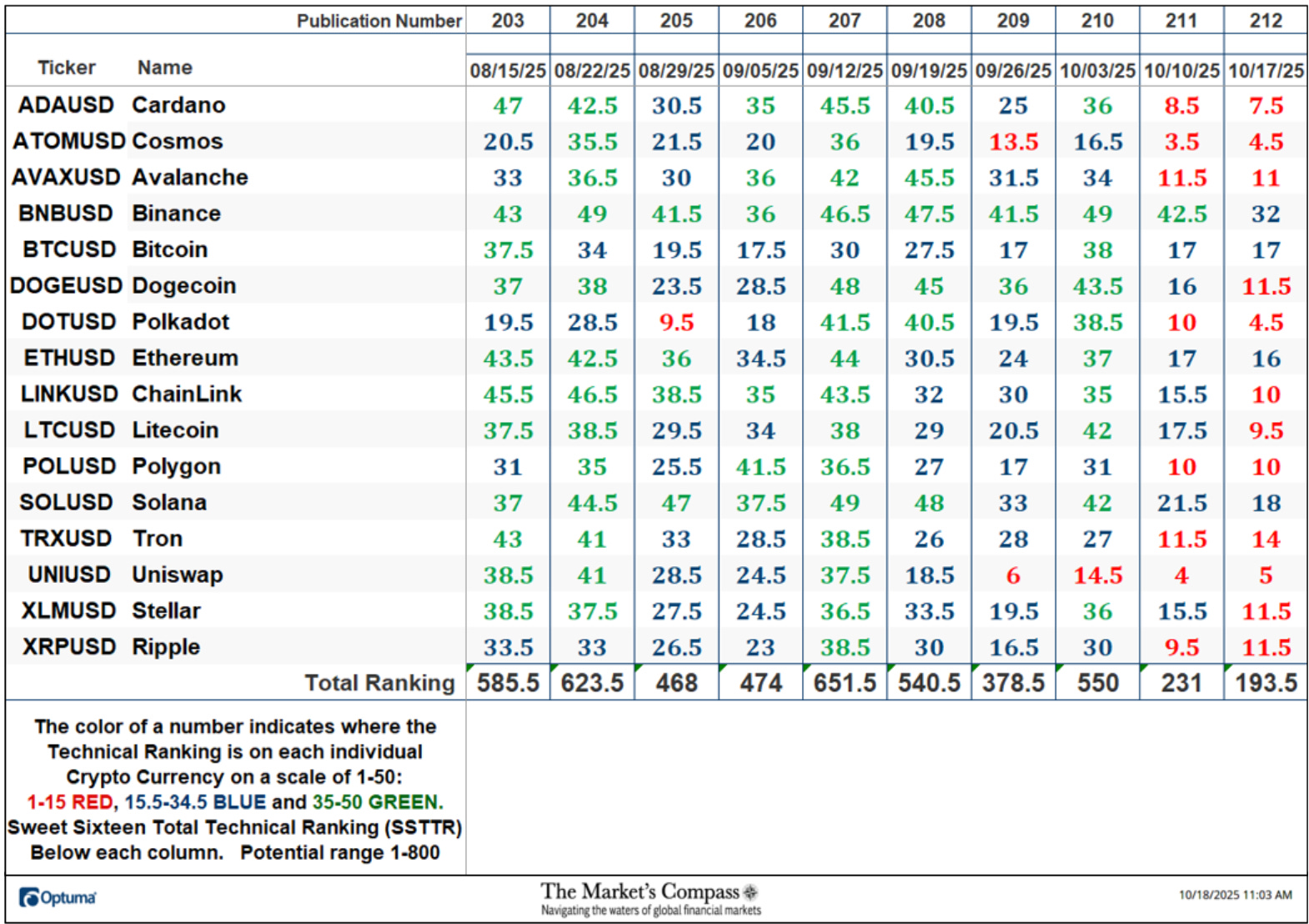 Welcome to this week’s publication of the Market’s Compass Crypto Sweet Sixteen Study #212. The Study tracks the technical condition of sixteen of the larger market cap cryptocurrencies. Every week the Studies will highlight the technical changes of the 16 cryptocurrencies that I track as well as highlights on noteworthy moves in individual Cryptocurren…