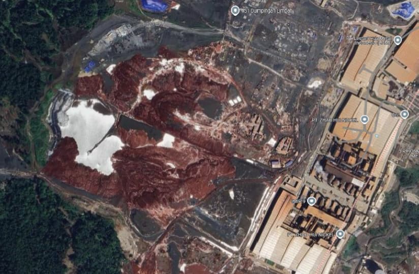 A google earth image of the tailings management facility in the Indonesia Morowali Industrial Park (IMIP) in Sulawesi.