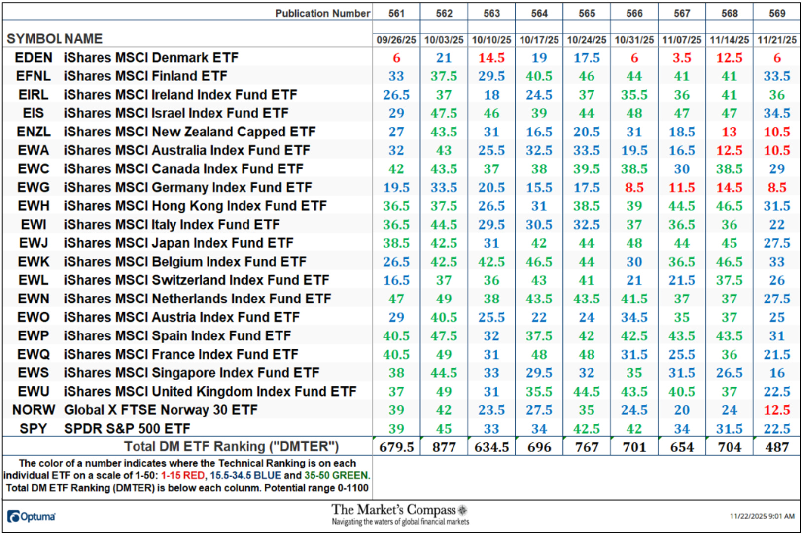 Welcome to this week’s publication of the Market’s Compass Developed Markets Country (DMC) ETF Study #569*. It highlights the technical changes of the 21 DM Country ETFs that I track on a weekly basis and publish every third week. There are three ETF Studies that include the Market’s Compass US Index and Sector (USIS) ETF Study, the Developed Markets Co…