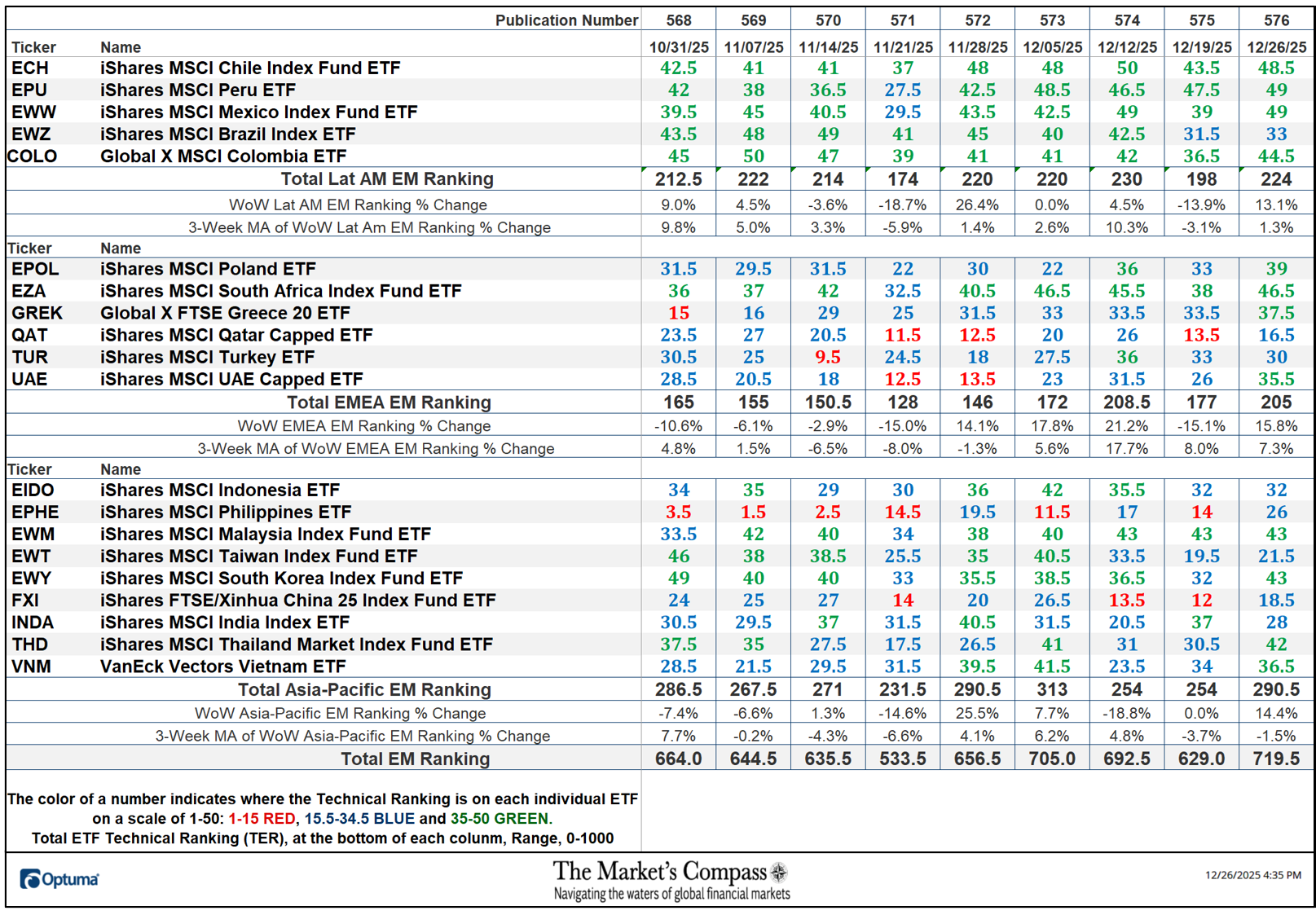 Welcome to The Market’s Compass Emerging Market’s Country ETF Study, Week #576. As always, it highlights the technical changes of the 20 EM Country ETFs that I track on a weekly basis and publish every third week. Paid subscribers will receive this week’s unabridged Emerging Market’s Country ETF Study sent to their registered e-mail. Past publications c…